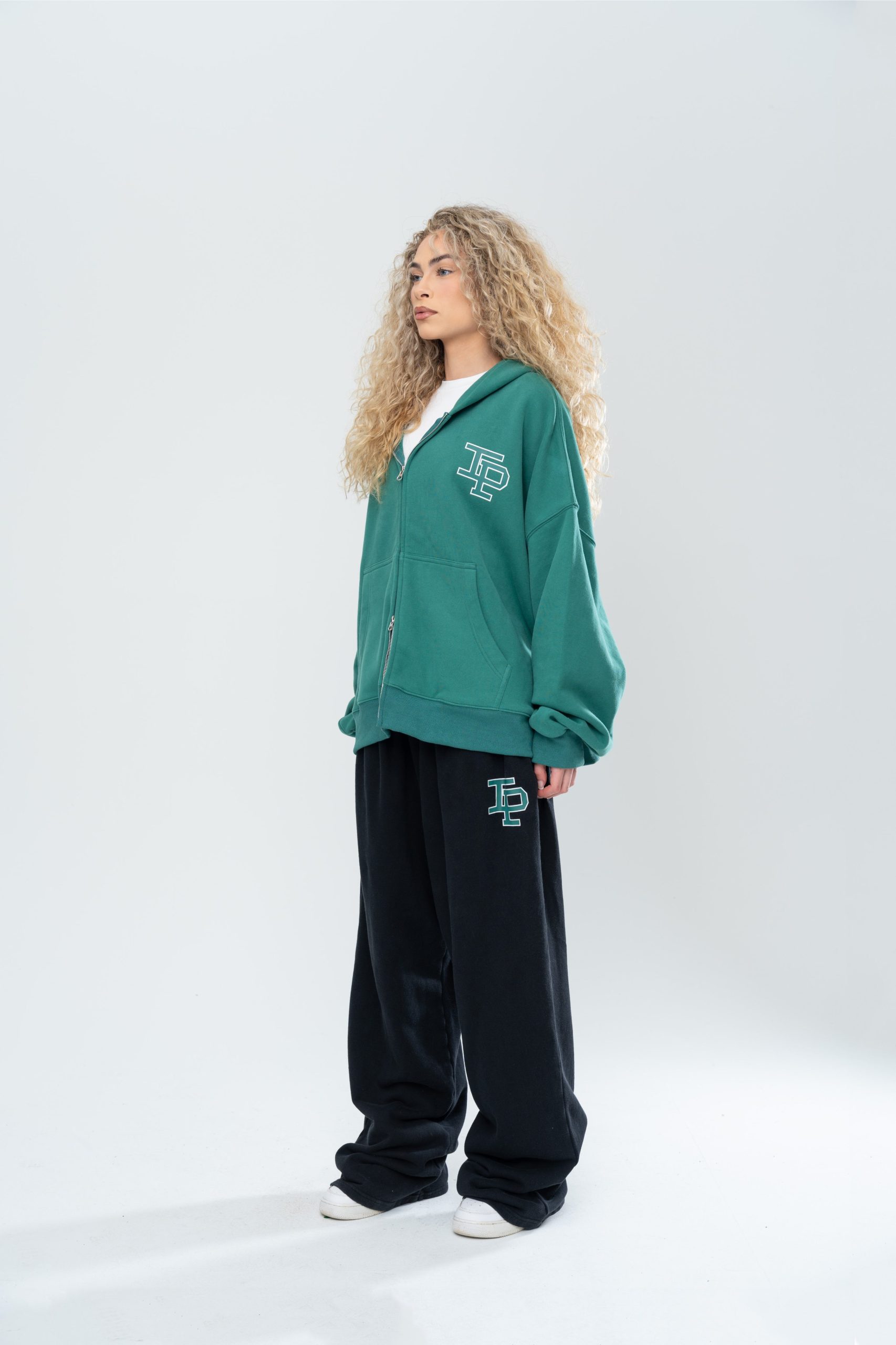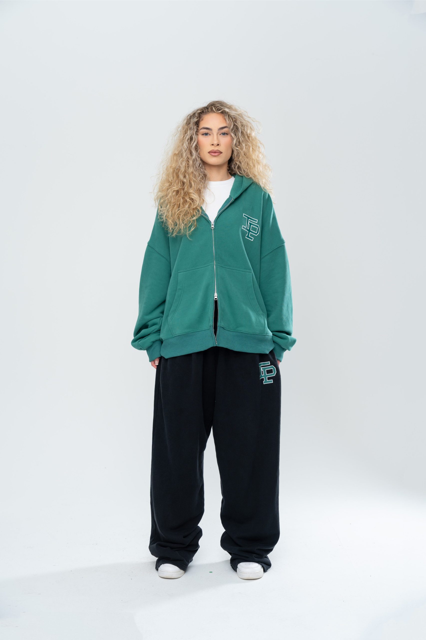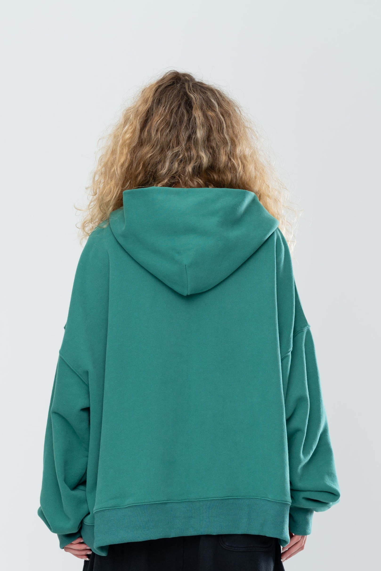 The Classic Double Zip Hoodie in Forest Green is constructed with an oversized boxy silhouette and an ultra-premium heavy-weight brushed french terry cotton. Hand distressing details throughout the hem and cuffs provide a unique finish for each garment. Finished with a 2-way zip for fit customization and screen printed branding to the front.