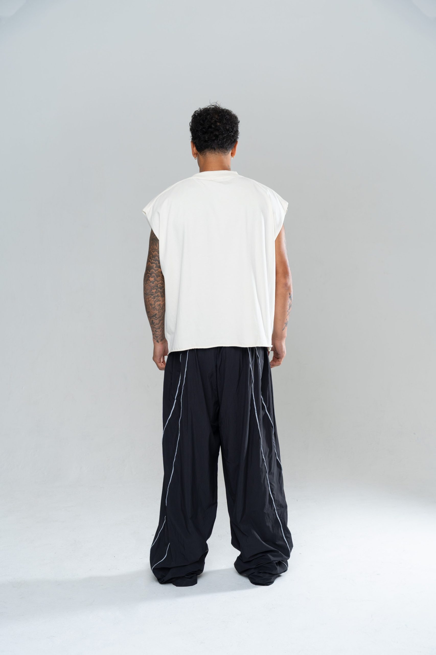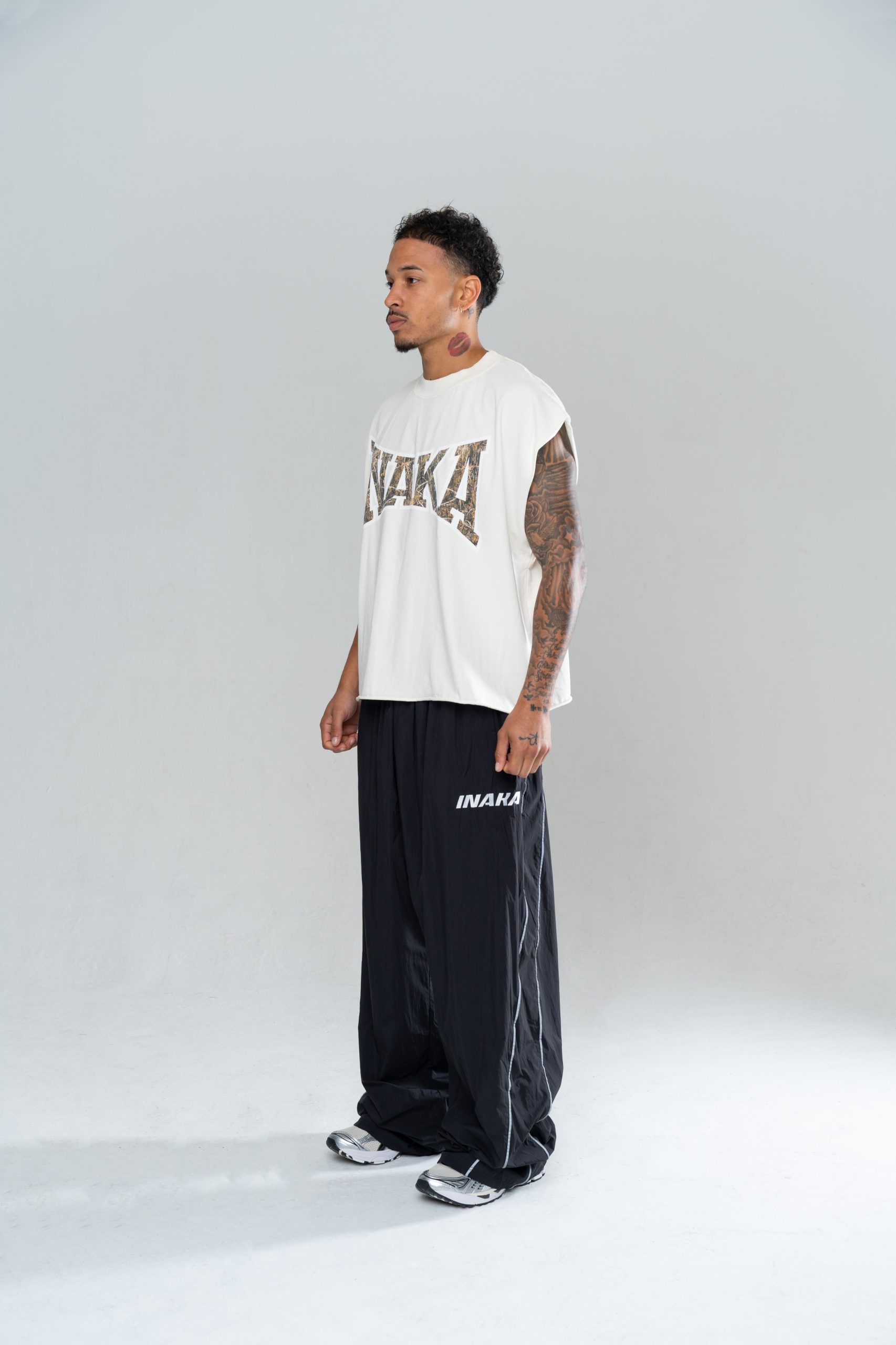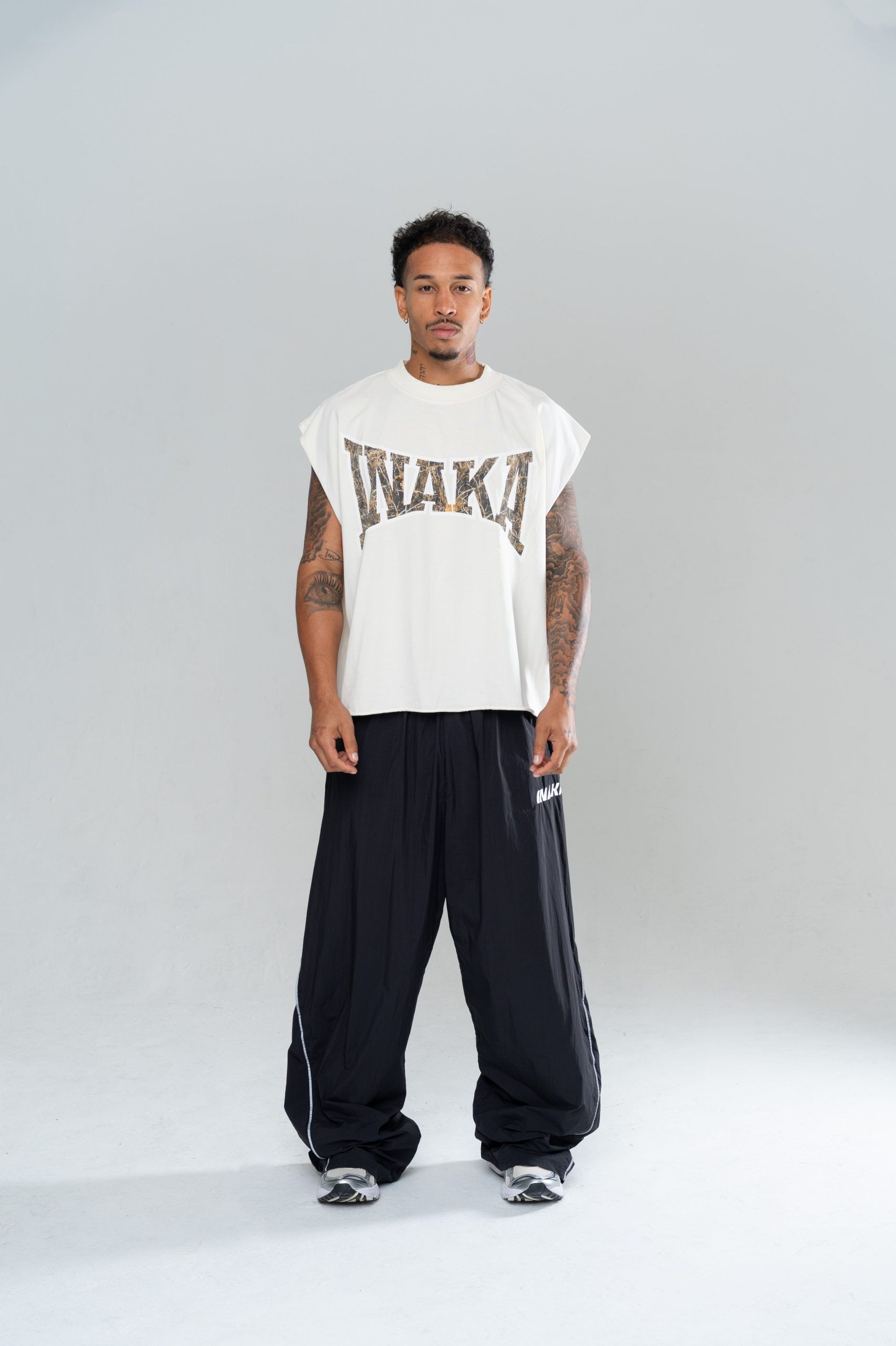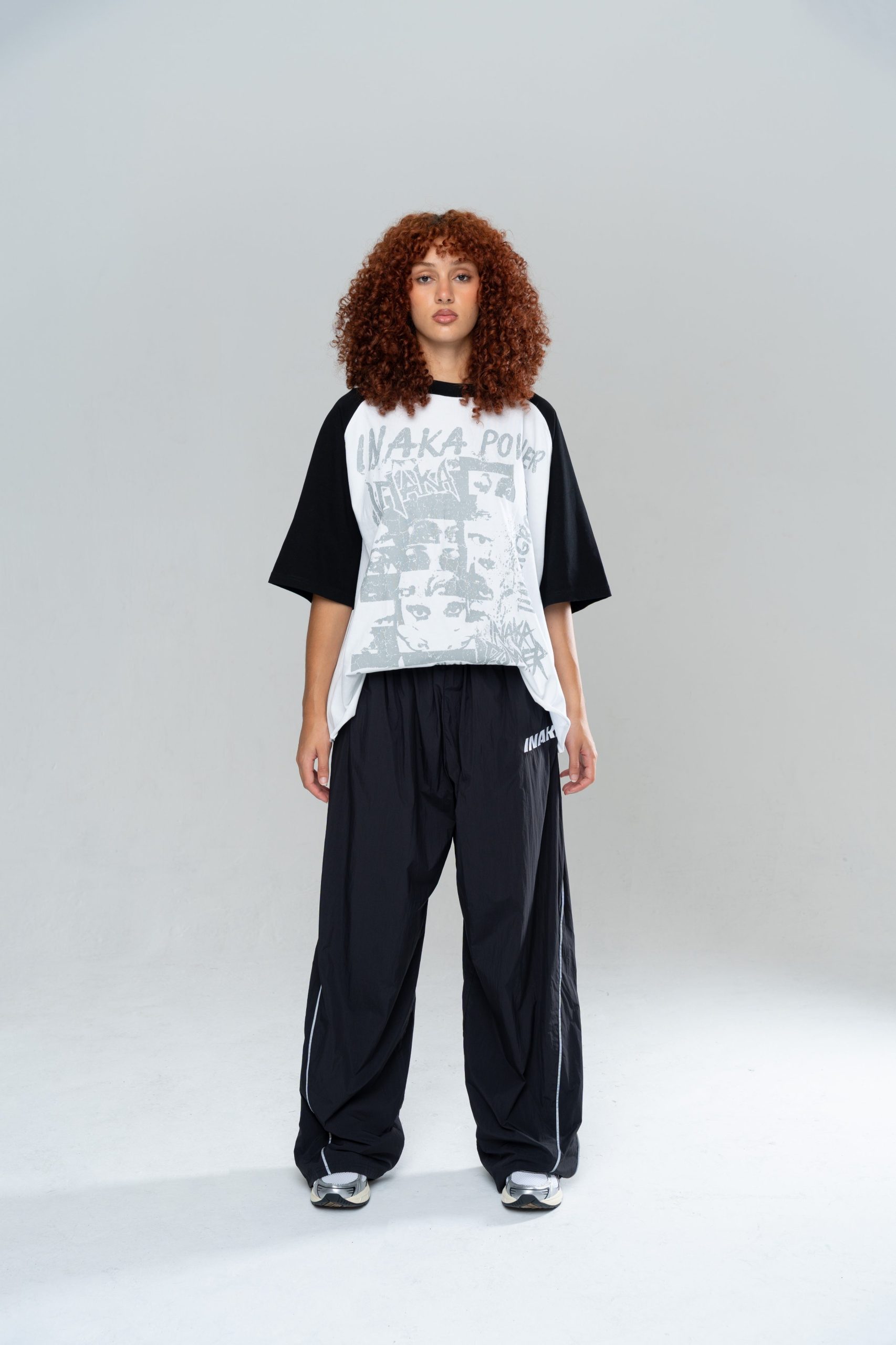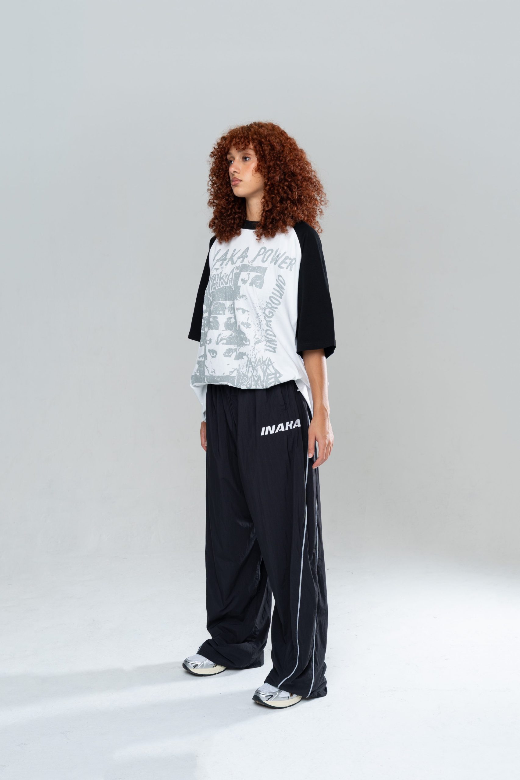 An INAKA™ Classic Baggy Trackpants. The Iconic Baggy Trackpants in Black are constructed in a lightweight nylon with internal mesh lining. The trackpants feature a reflective pipping and an elastic waistband for comfort. Constructed in our signature baggy fit.