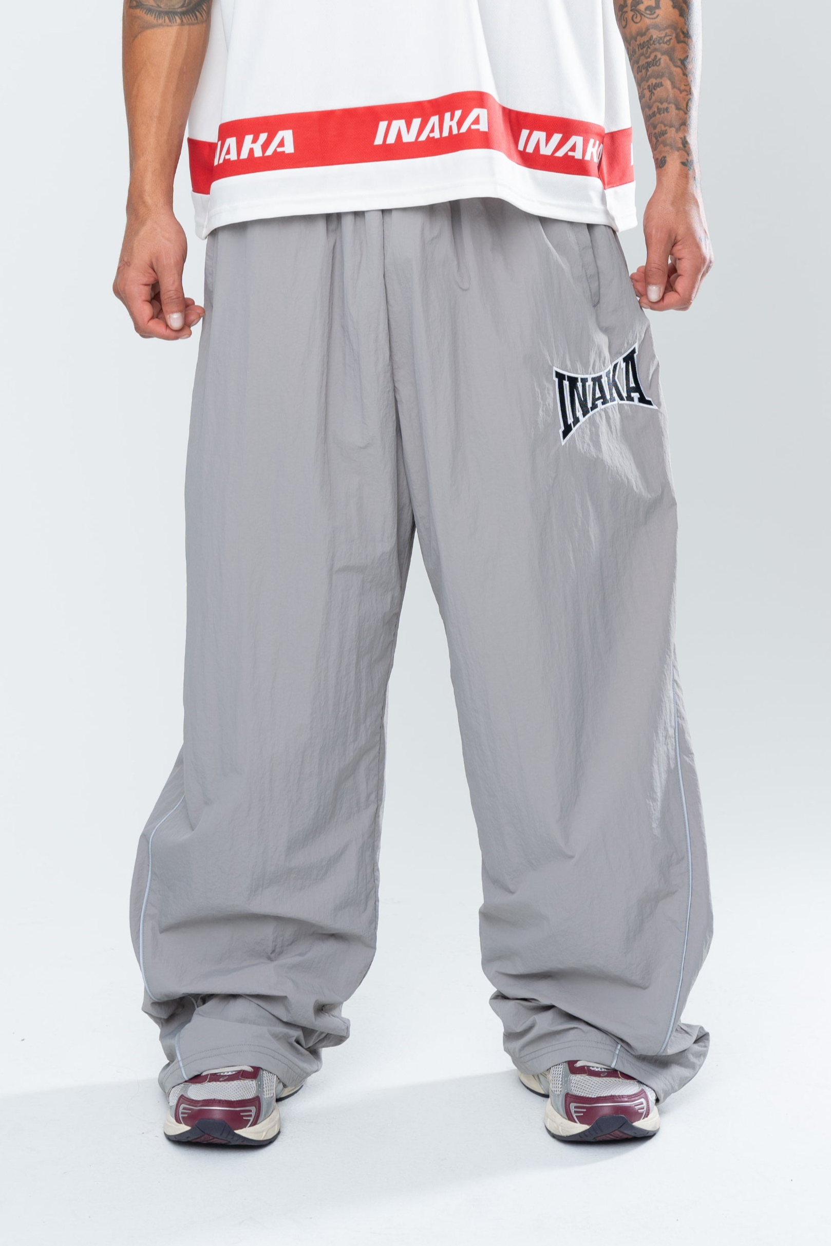 The POWERSHOT BAGGY TRACKPANTS are constructed in a lightweight nylon with internal lining. The track pants feature an elastic waistband for comfort and reflective pipping. Constructed in our signature baggy fit.