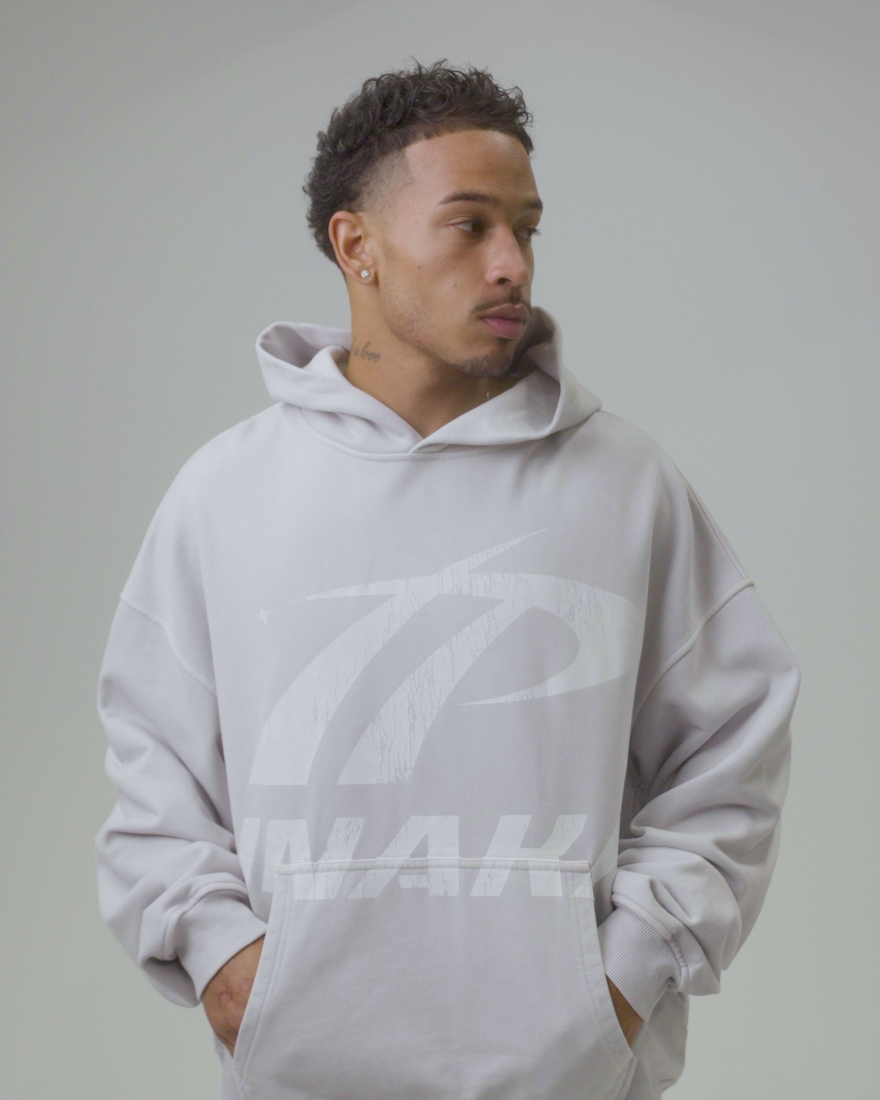 The Sportswear Hoodie is constructed with a slightly oversized boxy silhouette and an ultra-premium heavy-weight brushed French terry cotton. Oversized screen printed branding to the front. Finished with pigment dye to give a true vintage feeling.